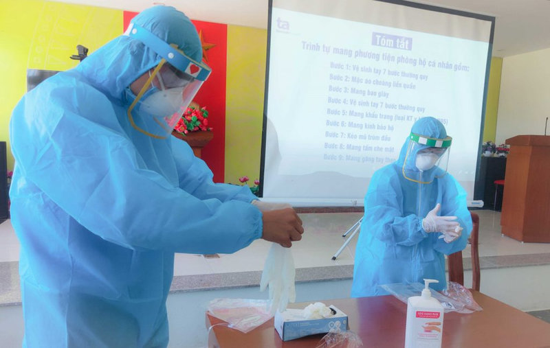 - Cán bộ quản lý/cán bộ y tế cung cấp khẩu trang y tế và hướng dẫn người nghi ngờ mắc bệnh COVID-19 đeo đúng cách.