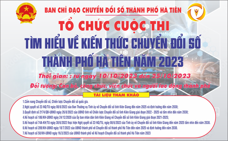 aA Chuyển đổi số Cuộc thi trắc nghiệm kiến thức Chuyển đổi số thành phố Hà Tiên năm 2023 13/10/2023, 09:19 Quay về Chia sẻ Z Copy link thành công Tin khác UBND thành phố Hà Tiên tổ chức lễ phát động hưởng ứng Ngày chuyển đổi số quốc gia Chuyển đổi số 10/10/2024 Vè việc kiện toàn Tổ công tác Đề án 06 năm 2024 Chuyển đổi số 24/06/2024 Quyết định số 90/QĐ-UBND kiện toàn Ban chỉ đạo Chuyển đổi số thành phố Hà Tiên Chuyển đổi số 22/04/2024 Kế hoạch số 207 về công tác Chuyển đổi số thành phố Hà Tiên năm 2024 Chuyển đổi số 22/04/2024 Báo cáo Tình hình thực hiện công tác Chuyển đổi số năm 2023 và phương hướng, nhiệm vụ năm 2024 Chuyển đổi số 17/01/2024 Nỗ lực trong chuyển đổi số ở TP Hà Tiên Chuyển đổi số 12/12/2023 Thành phố Hà Tiên phát động cuộc thi trực tuyến “Tìm hiểu kiến thức về chuyển đổi số” Chuyển đổi số 23/10/2023 Kế hoạch chuyển đổi số thành phố Hà Tiên đến năm 2025 tầm nhìn đến năm 2030 Chuyển đổi số 07/09/2023 Về việc kiện toàn Tổ công tác triển khai Đề án 06 thành phố Hà Tiên Chuyển đổi số 05/06/2023 Quyết định Về việc kiện toàn Ban chỉ đạo Chuyển đổi số thành phố Hà Tiên Chuyển đổi số 05/04/2023 /cuoc-thi-trac-nghiem-kien-thuc-chuyen-doi-so-thanh-pho-ha-tien-nam-2023