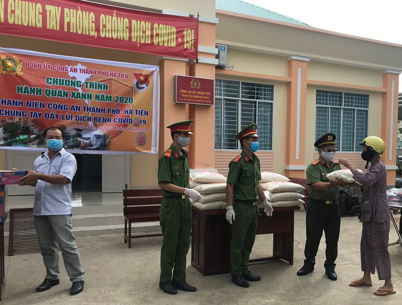 Nhằm chung tay đẩy lùi dịch bệnh COVID-19 đang diễn ra phức tạp, cùng quan tâm, chăm lo đến những gia đình có hoàn cảnh khó khăn về vật chất, tinh thần để vượt qua giai đoạn cách li xã hội cùng với cả nước chiến thắng dịch bệnh. Ngày 22/4, tại trụ sở Công an xã Thuận Yên, Ban chấp hành Đoàn ủy Công an thành phố Hà Tiên tổ chức trao 50 suất quà, mỗi suất trị giá 350.000 đồng gồm gạo, mì tôm, dầu ăn, nước tương cho các hộ gia đình có hoàn cảnh đặc biệt khó khăn, tổng trị giá các phần quà 17,5 triệu đồng.