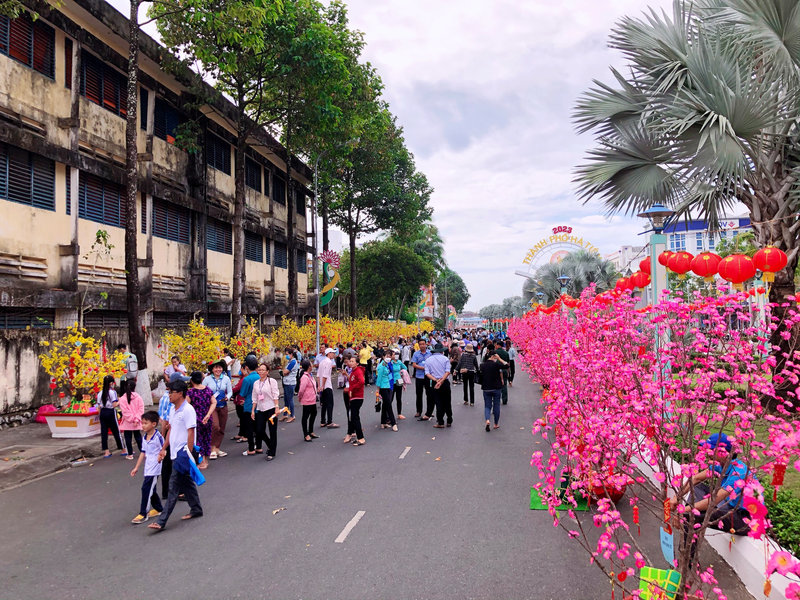Hội thi trang trí cây hoa ngày tết mừng xuân Quý Mão năm 2023 tại TP. Hà Tiên thu hút gần 1.000 người dân đến xem.