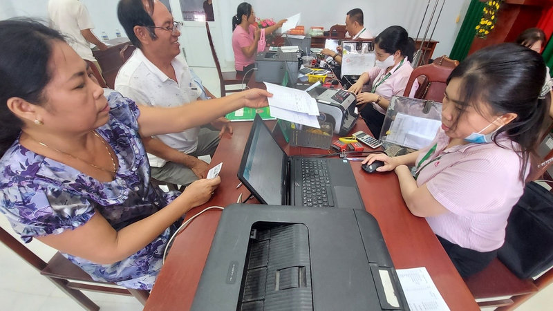 Cán bộ NHCSXH giải ngân cho khách hàng tại Điểm giao dịch xã