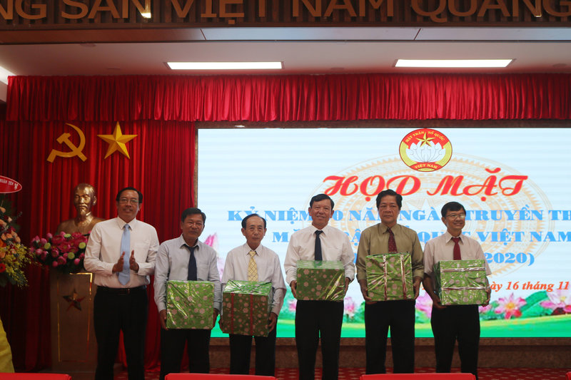 Tại buổi hợp mặt Ban Thường trực Ủy ban MTTQVN thành phố Hà Tiên tặng những phần quà cho các đồng chí nguyên lãnh đạo Ủy ban MTTQVN thành phố Hà Tiên và các xã, phường nhân dịp họp mặt kỷ niệm 90 năm Ngày thành lập Mặt trận Dân tộc Thống nhất Việt Nam - Ngày truyền thống MTTQVN (18/11/1930 - 18/11/2020)./.