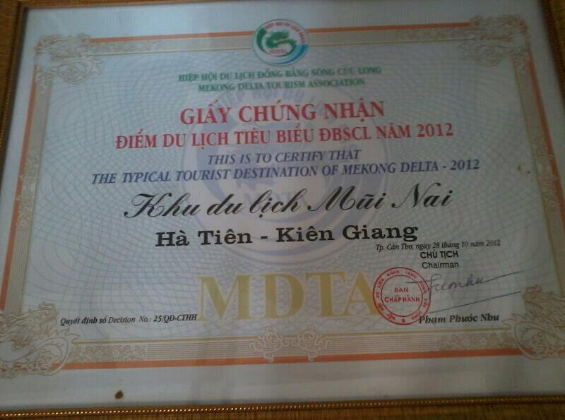 Ngày 25/03/2013, Hội nghị tổng kết hoạt động của Hiệp hội du lịch ĐBSCL (MDTA) năm 2012 tổ chức tại TP Cà Mau. MDTA kiến nghị Bộ VHTTDL xúc tiến thành lập Ban điều phối phát triển du lịch ĐBSCL nhằm quảng bá các điểm du lịch của 13 tỉnh thành khu vực cho du khách trong và ngoài nước và thu hút ngày càng nhiều khách du lịch đến với ĐBSCL. Qua tổng hợp các ý kiến đóng góp về tiêu chí bình chọn các điểm du lịch ĐBSCL, MDTA đã chọn 07 đơn vị đạt tiêu biểu, trong đó Khu du lịch Mũi Nai – Hà Tiên – Kiên Giang đươc trao giấy chứng nhận là 1 trong 7 điểm đạt các tiêu chí điểm du lịch tiêu biểu, ký vào ngày 28 tháng 10 năm 2012.