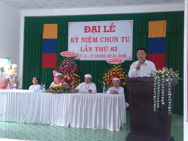 Ông Trương Hoàng Anh, Phó Trưởng ban Ban Tôn giáo tỉnh phát biểu chúc mừng lễ kỷ niệm Chơn tu lần thứ 83 (ngày khai phái của Hội thánh Cao Đài Bạch Y-Liên Đoàn Chơn Lý)
