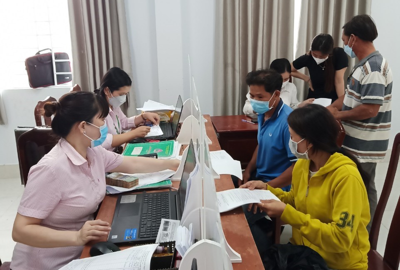 Ảnh: Cán bộ Ngân hàng Chính sách xã hội giải ngân cho khách hàng