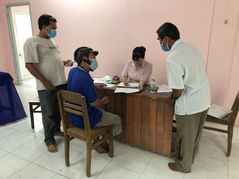Phòng giao dịch Ngân hàng Chính sách xã hội thành phố Hà Tiên thực hiện đối chiếu phân loại nợ cho khách hàng tại ấp Rạch Vược xã Thuận Yên thành phố Hà Tiên