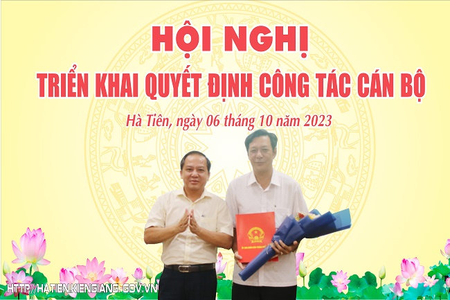 Tại hội nghị, đồng chí Lê Dạ Hương - Trưởng Phòng Nội vụ TP. Hà Tiên đã công bố Quyết định số 1855/QĐ-UBND ngày 6-10-2023 của Chủ tịch Ủy ban nhân dân TP. Hà Tiên về việc tiếp nhận, bổ nhiệm đồng chí Trần Dũng Trí Nhân - Bí thư Đảng ủy, Chủ tịch Ủy ban nhân dân phường Mỹ Đức giữ chức vụ Chánh Văn phòng Hội đồng nhân dân, Ủy ban nhân dân TP. Hà Tiên.