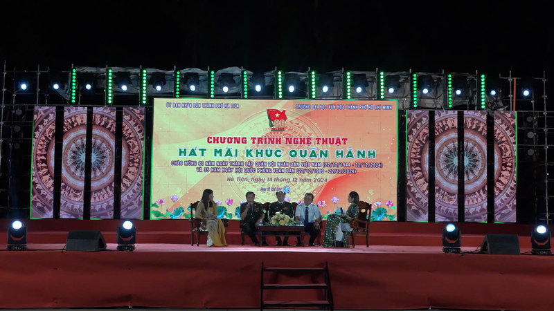 Tại chương trình, các đại biểu được nghe đồng chí Đại tá Lê Văn Tân và đồng chí Vũ Xuân Hợi- Cựu chiến binh Trung đoàn 18 chia sẻ về những chiến công oanh liệt, hào hùng, những khoảnh khắc tưởng nhớ, tri ân, xen lẫn nỗi niềm xúc động khi nhắc đến sự hy sinh cao cả của các chiến sĩ và người dân trong công cuộc bảo vệ Tổ quốc, để chúng ta có được cuộc sống bình yên như ngày hôm nay. Theo đó, cách đây 46 năm, Hà Tiên là chiến trường ác liệt, Khmer đỏ đã dùng nhiều thủ đoạn đánh chiếm biên giới Hà Tiên- An Giang, đồng thời chiếm một số đảo và đất liền. Tháng 02/1978, khi mới hoàn thành nhiệm vụ quốc tế ở Nam Lào, hành quân về Quảng Trị, Trung đoàn 18 nhận lệnh vào chiến đấu bảo vệ biên giới Hà Tiên dưới sự chỉ huy của Quân khu 9, Tỉnh ủy, Tỉnh đội Kiên Giang. Vào 17 giờ ngày 23/12/1978, Trung đoàn 18 phối hợp cùng với các lực lượng đánh quân Khmer đỏ ra khỏi biên giới Hà Tiên. Ngoài ra, các đại biểu còn được giao lưu, đặt ra những câu hỏi để tìm hiểu rõ hơn về những trận đánh tiêu biểu trên địa bàn thành phố Hà Tiên; đồng thời chia sẻ về cuộc sống của những người lính khi kết thúc chiến tranh trở về với cuộc sống đời thường; những hồi ức, trăn trở; những giải pháp để tiếp tục phát huy phẩm chất truyền thống cao quý “Bội đội Cụ Hồ”, là tấm gương sáng cho thế hệ trẻ noi theo…Tham dự chương trình nghệ thuật “Hát mãi khúc quân hành”, các đại biểu được thưởng thức chương trình biểu diễn nghệ thuật gồm 02 chương, cụ thể là: “Gầy dựng non sông” và “Tiếp bước cha ông”, với những nội dung ca ngợi, tôn vinh những người chiến sĩ đã có công bảo vệ Tổ quốc, nỗi lòng của những người mẹ tiễn con ra chiến trường, cũng như nỗi niềm của những người con hướng về gia đình, quê hương yêu dấu… Thông qua những lời ca, tiếng hát nhằm nhắc nhở mỗi công dân thể hiện nghĩa vụ và phát huy tinh thần trách nhiệm, góp phần xây dựng và bảo vệ Tổ quốc ngày càng vững mạnh.