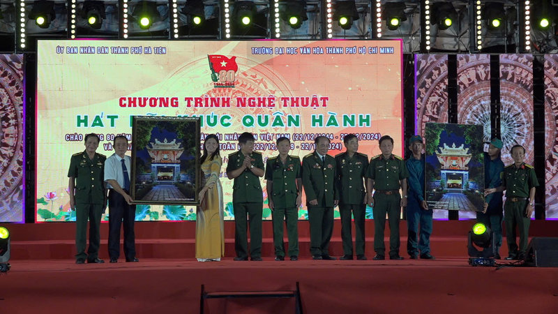 Dịp này, đại diện Cựu chiến binh Trung đoàn 18 đã trao tặng 02 bức tranh cho TP. Hà Tiên. Thành ủy Hà Tiên trao giấy khen cho 03 tập thể và 10 cá nhân có thành tích xuất sắc trong cuộc thi viết tìm hiểu 79 năm truyền thống lực lượng vũ trang tỉnh Kiên Giang (10/09/1945-10/09/2024); 80 năm Ngày thành lập Quân đội nhân dân Việt Nam và 35 năm Ngày hội Quốc phòng toàn dân. Ban Tổ chức chương trình trao giấy chứng nhận cho 15 tập thể có thành tích xuất sắc trong cuộc thi viết, vẽ báo tường chào mừng kỷ niệm 80 năm Ngày thành lập Quân đội nhân dân Việt Nam và 35 năm Ngày hội Quốc phòng toàn dân./.