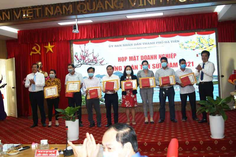 Ngày 12/01/2021 thành phố Hà Tiên tổ chức họp mặt các doanh nghiệp trong và ngoài địa bàn thành phố. Về phía lãnh đạo thành phố Hà Tiên Tham dự cuộc họp có các đồng chí Lê Quốc Anh Bí thư thành ủy – Chủ tịch UBND, đồng chí Dương Văn Thuận Phó bí thư thành ủy – Chủ tịch HĐND, đồng chí Liêu Khắc Dũng phó chủ tịch UBND thành phố và đồng chí Mai Quốc Thắng phó chủ tịch UBND thành phố cùng đại diện các Phòng, Ban chuyên môn và các cơ quan đóng trên địa bàn thành phố Hà Tiên.