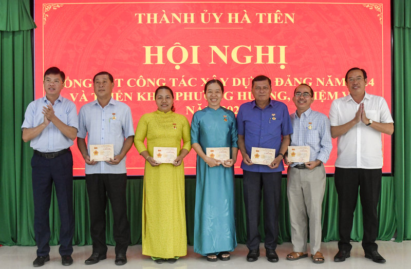 Dịp này, Ủy ban Kiểm tra Trung ương tặng kỷ niệm chương “Vì sự nghiệp kiểm tra Đảng” cho cán bộ, đảng viên có nhiều thành tích đóng góp cho sự nghiệp kiểm tra của Đảng. Ban Thường vụ Thành ủy Hà Tiên tặng giấy khen cho 12 chi, đảng bộ đạt thành tích hoàn thành xuất sắc nhiệm vụ năm 2024; tặng giấy khen cho 5 tập thể lãnh đạo, quản lý đạt thành tích hoàn thành xuất sắc năm 2024; tặng giấy khen cho 10 đảng viên có thành tích hoàn thành xuất sắc nhiệm vụ 5 năm liền (2020-2024). Chủ tịch Ủy ban nhân dân thành phố tặng giấy khen cho các tập thể, cá nhân có thành xuất sắc trong thực hiện các nhiệm vụ...