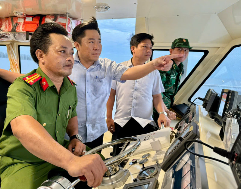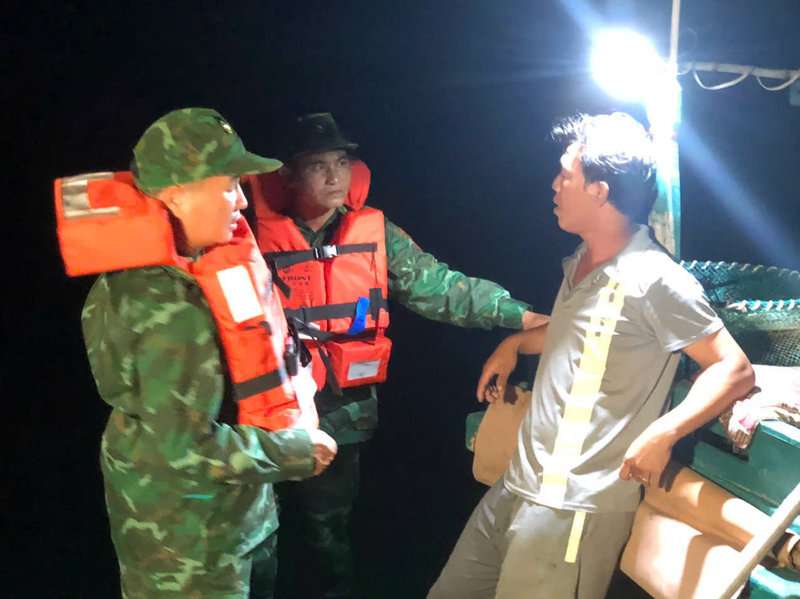 Ảnh 2. Lực lượng liên ngành tuyên truyền cho ngư dân